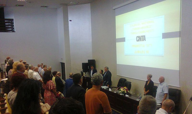 De departe, momentele de maximă atracţie ale sărbătorii au adus în primul plan al atenţiei doi veritabili vectori care au cucerit auditoriul, fiind amintită aici, mai întâi, alocuţiunea doctă, plină de sensibilitate şi extrem de riguroasă prin relevanţa şi eleganţa prezentării de către domnul Adrian Gorun, iar, în cel de-al doilea rând, momentul uriaş de umor nefardat care poartă amprenta unui nume sonor al teatrului românesc şi care se cheamă Horaţiu Mălăele! Pentru că încă suntem cu frunţile plecate şi apăsate de întristare la o zi după Sărbătoarea «Tăierea Capului Sfântului Ioan Botezătorul», dar şi dintr-un motiv de spaţiu publicistic, vom prezenta, pentru astăzi, doar prima parte a materialului documentar despre această manifestare, urmând ca partea a doua, cea presărată cu umor de tot râsul, să fie difuzată ulterior! Vizibil marcat de emoţiile momentului, domnul Adrian Gorun a început prin a spune că: ,,Dumnezeu a rânduit să ne naștem și să trăim la întâlnirea a două veacuri, miluindu-ne în Atotputernicia Lui cu darul cel mai de preț care este VIAȚA. Această fire divină a plămădit firea fiecăruia dintre noi, croindu-ne căi nebănuite spre întâlnirea cu noi înșine, întru’ împlinirea sufletească, atât de necesară armoniei cu lumea în care am fost hărăziți să trăim. Să-I mulțumim Bunului Dumnezeu pentru fiecare zi și pentru fiecare clipă trăită, să-I mulțumim pentru acest crâmpei de timp care ne-a readus alături, după 50 de ani rătăciți de toți, dar şi de fiecare în parte, pe potecile pline de urcușuri și de povârnișuri ale vieții! Să-I mulțumim pentru adâncul mesaj divin pe care l-a sădit în fiecare, făcându-ne OAMENI, adică, ființe dăruite, dar care dăruiesc la rândul lor semenilor, deschizându-și larg ferestrele sufletului și ale minții spre a revărsa peste profanul cotidian acel sacru nemărginit ce ne-a fost dăruit ancestral! Fără această ambivalentă dăruire nu ne-am fi putut regăsi azi, aici, și nu ne-am fi putut bucura împreună de inegalabila clipă a regăsirii. Se cuvine să-i mulțumim colegului nostru drag, Viorel Negrea, suflet înflăcărat care, de câteva luni, prin strădanii susținute, secondat îndeosebi de la fel de dragii Ilie Budin și Ștefan Gugea, ne-a retrezit conștiința apartenenței, înflăcărându-ne spiritul și chemându-ne la rememorări adânc înfiripate în trecutul nostru tineresc inconfundabil. Ei ne-au reamintit, sondând în eul fiecăruia, că semnificația stă primordial în NOI, cei care am fost laolaltă cândva, împărțind frățește bucurii și restriști, împliniri și insuccese imanente vieții, tainele muncii de Sisif, fragmentele «culmilor Everestului» și adâncurile abisale ale oceanului înghețat al unei adolescențe efemere! Din constrângeri de timp, azi o fac printr-o maximă esențializare, demnă de elevul din clasa a XII-a C”!