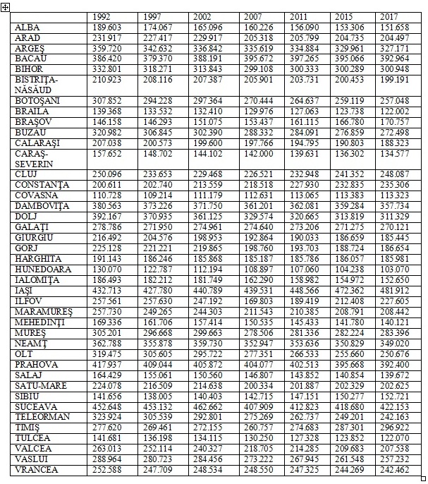 Iată cum se prezenta cu cinci ani în urmă populaţia României cu domiciliul stabil în mediul rural, statistica pe judeţe, în privinţa numărului de persoane, în perioada 1992 – 2017