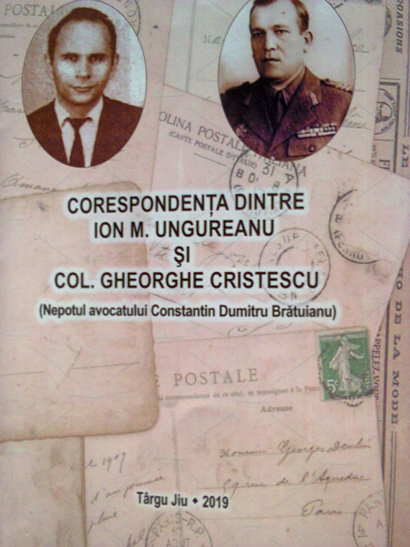Corespondenţa se dovedeşte nu doar o posibilitate de transmitere a unor idei şi sentimente în relaţiile interumane sau un prilej de a nuanţa şi de a diversifica actul de comunicare, dar şi o modalitate sui generis de a rescrie istoria şi de a-i reda o dimensiune aparte, prin preocuparea susţinută de a fi readuse în actualitate unele evenimente care au trecut aproape neobservate sau care au fost ignorate prin indiferenţa şi prin omisiunea contemporanilor! De această dată, corespondenţa dintre domnul jurist Ion M. Ungureanu şi colonelul Gheorghe Cristescu, nepotul avocatului Constantin Dumitru Brătuianu, un om cu adânci rădăcini în istoria Ţicleniului, constituie o noutate prin felul de expunere şi prin corelarea unor evenimente care au ca numitor comun desluşirea rădăcinilor neamului şi trăinicia memoriei unor oameni care au avut posibilitatea de a-şi transmite ceva din savoarea inegalabilă a vieţii lor! Apărută la Târgu-Jiu în anul 2019, la Editura «Măiastra», cartea de faţă cuprinde în doar 30 de pagini atâtea informaţii şi relatări, încât ar trebui sistematizate pe probleme de referinţă şi de interes local, dar şi pe anumite direcţii de analiză istorică generală! Lucrarea cuprinde, în mare parte, mesajele transmise de către colonelul Gheorghe Cristescu domnului jurist Ion M. Ungureanu, un remarcabil primar al localităţii noastre, doar ultima scrisoare inserată în finalul cărţii reprezintă cuvintele de mulţumire ale fostului primar şi profunda recunoştinţă pentru interesul manifestat şi pentru dragostea pe care nepotul avocatului Constantin Dumitru Brătuianu a purtat-o localităţii de care l-au legat anii copilăriei sale!