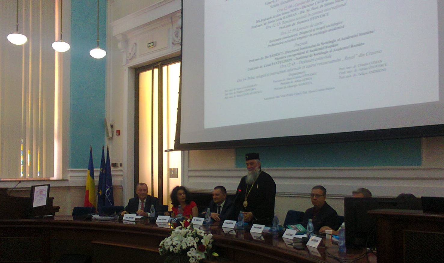 În continuare, Înaltul Ierarh al Eparhiei Olteniei a pornit de la faptul că: ,,Sociologia devine o cunoaştere pe orizontală, pentru că noi analizăm aspectele sociale ale vieţii, tot ceea ce cuprinde în exteriorul nostru şi în relaţiile cu cei de lângă noi, prin modalităţi de viaţă, comportamente, feluri de a gândi şi aşa mai departe. Toate acestea formează un cod de legi şi de principii care pot fi dezvoltate în măsura în care omul trăieşte în relaţie cu ceilalţi oameni! Dar, niciodată omul nu poate trăi în izolare, pentru că, aşa cum am văzut, el este o fiinţă socială şi sociabilă prin actul creator, iar, în felul acesta punem în evidenţă darul de la Dumnezeu! Prin înzestrările sale, putem spune cu certitudine că omul este o persoană unică în univers, pentru că fiecare om în parte este o creaţie unică şi are «ceva» cu totul şi cu totul deosebit faţă de toţi ceilalţi, chiar dacă, după înfăţişare semănăm cu părinţii noştri, cu cei din jur, chiar mergem până acolo unde avem impresia că ne identificăm unii cu alţii! Dumnezeu nu se repetă prin Creaţia Sa! Dacă ar exista ceva care s-ar repeta, ar însemna că Dumnezeu este mărginit! Aşadar, întrucât Dumnezeu este nemărginit, ne creează pe noi, pe fiecare în parte! Este un dar al Lui Dumnezeu, dar, în acelaşi timp este şi o obligaţie, iar, având ceva ce nu are cel de lângă mine, mă obligă în acelaşi timp să fiu în colaborare cu cel de lângă mine, de lângă noi! Şi el să fie în colaborare cu cel de lângă mine, adică, cu mine, pentru că cel ce are el în plus, îmi lipseşte mie! Tocmai pe aceste principii se fundamentează şi creşte familia, pentru că nu avem ceva care să ne facă independenţi, să ne facă autonomi, să ne facă separaţi de restul lumii! Şi astfel, simţim nevoia de a dărui şi nevoia de a primi! Deci, aceste lucruri sunt esenţiale în viaţa noastră şi în acelaşi timp devin complementare! Nu dorim o societate plină de egoism, de narcisism, pentru că Dumnezeu doreşte ca lumea «viaţă să aibă» şi s-o aibă din belşug! De fapt, pe aceste considerente lucrează iubirea care este «piatră de bază» în relaţiile dintre oameni! Oamenii primesc acest dar de la Dumnezeu, pentru că ei nu învaţă să iubească dintr-o formă pedagogică sau învăţătorească! Oamenii au acest dar în ei înşişi, iar, acest lucru se observă, dacă privim cu atenţie lumea care ne înconjoară, pentru că avem confraţi care au mai multe obligaţii, dar, şi unii confraţi care au mai multe drepturi! Aşadar, iubirea este aceea care îl caracterizează pe om ca fiinţă raţională, ca fiinţă logică şi ca fiinţă dialogică, fiinţă care doreşte desăvârşirea! Putem spune de aici, că în actul social şi în viaţa socială, ne desăvârşim! Cum putem constata, cuvântul «desăvârşire» nu înseamnă ceva pe care l-am împlinit şi ne este îndeajuns, ci, înseamnă ceva pe care trebuie să-l fac mereu, pentru că ne desăvârşim! Adică, eu lucrez mereu pentru modelarea, pentru cizelarea fiinţei mele, şi fac acest lucru cu un scop de a mă împlini personal, de a deveni mai bun! Toate acestea sunt mărginite de considerente iraţionale şi eronate în cel mai înalt grad, însă, actul desăvârşirii este acela care se manifestă în plan spiritual! Pentru că doresc să mă desăvârşesc, să mă cultiv, să ajung la un grad mai înalt şi iată că lumea, cultura şi civilizaţia europeană au propus mai demult, acest lucru, pentru că Europa a fost caracterizată ca un model sfânt, un model pe care l-a avut civilizaţia europeană mai de demult, pe când astăzi, lucrurile par să fie mai limitate şi modelul a devenit omul «economic», însă, ce bine poate să fie acesta, pentru că o civilizaţie fără suflet, fără spirit este damnată să dispară! Aşadar, revenirea la adevăratele norme ale socialului, ale valorilor sociale este absolut obligatorie! De aceea, consider că acest simpozion ştiinţific are un mare impact pentru viaţa noastră socială, şi cred că printre multele roluri ale cercetării trebuie să fie şi acela al cercetării spirituale, atât de necesară pentru devenirea noastră în viitor! Vă doresc să aveţi succes şi mult spor în activitatea dumneavoastră” motiv pentru care domnul Prof.univ.dr. Dumitru OTOVESCU a răspuns cu evlavioasă recunoştinţă: ,,Vă mulţumim pentru participarea Înaltpreasfinţiei voastre la manifestăruile noastre şi dorim ca relaţia dintre ştiinţă şi credinţă să ne demonstreze că este extrem de importantă şi actuală pentru devenirea omului de astăzi şi dintotdeauna”!
