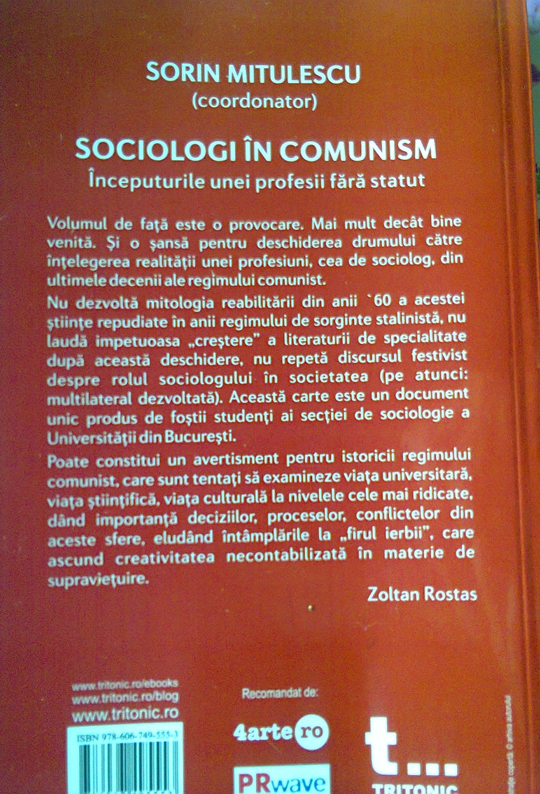 Se poate spune că intenţia coordonatorului acestei cărţi excepţionale trece chiar dincolo de memoriile justificative pe care le sugerează lucrarea «Amintiri şi gânduri», aparţinând Academicianului H.H. Stahl, marele corifeu al Şcolii gustiene de Sociologie, care marca o istorie a renumitei şcoli! Pentru că lucrarea «SOCIOLOGI ÎN COMUNISM. Începuturile unei profesii fără statut», se dovedeşte a fi una originală, deoarece nu se bazează exclusiv doar pe propria experienţă, ci însumează şi redactarea unor «amintiri» ale experienţei sociologilor, ale cândva tinerilor absolvenţi de sociologie, într-un moment crucial al carierei lor de după terminarea studiilor. Ca un examen cu mult mai important decât examenul de licenţă, care la vremea aceea se numea «examen de stat», fiind legat de repartiţia şi de primirea absolvenţilor la primul lor loc de muncă, a rămas acest examen al începutului drumului vieţii reale! (VA URMA)