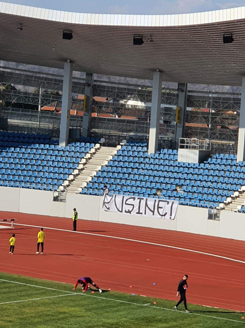 Pandurii a terminat sezonul regulat din Liga 3 cu încă o remiză. Trupa lui Mario Găman a ţinut piept liderului CSM Reşiţa, într-un meci fără goluri, disputat, vineri, pe Stadionul Municipal din Târgu-Jiu. A fost o confruntare din care gazdele au ieşit şifonate, la propriu şi figurat. Suporterii de la peluză au protestat din cauză că meciul nu a fost programat sâmbătă, dar şi pentru că, în opinia lor, unii jucători nu au atitudinea corespunzătoare când intră pe teren. Astfel, în locul obişnuit al galeriei a fost instalat un banner cu mesajul ,,RUŞINE”.