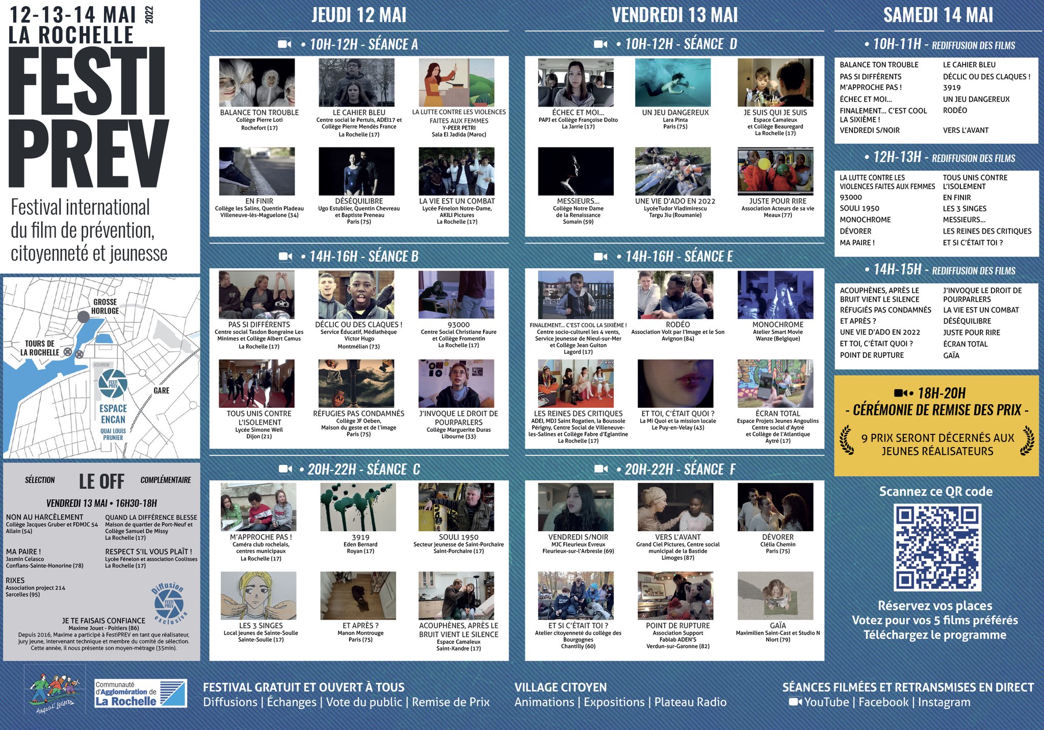 „La preselecție au fost înscrise 156 de filmulețe din 9 țări francofone: Franța, Belgia, Elveția, Senegal, Maroc, Benin, Canada, Camerun și România. 36 de scurtmetraje vor fi difuzate în finală, 33 fiind producții franceze și 3 străine (Belgia, Benin și România). Creațiile artistice ale tinerilor realizatori vor fi difuzate în perioada 12-14 mai 2022, pe scena sălii Espace Encan din La Rochelle. După fiecare scurtmetraj, tinerii realizatori și actori vor avea 4 minute în care își vor prezenta filmul și 4 minute de dialog cu juriile și publicul prezent în sală. Elevii colegiului nostru au mai participat și la alte ediții ale acestui festival, dar nu au reușit să treacă de etapa preselecțiilor. Reușita lor din acest an este o dovadă clară a faptului că perseverența este cheia succesului în orice domeniu de activitate”, au anunțat reprezentanții CNTV.