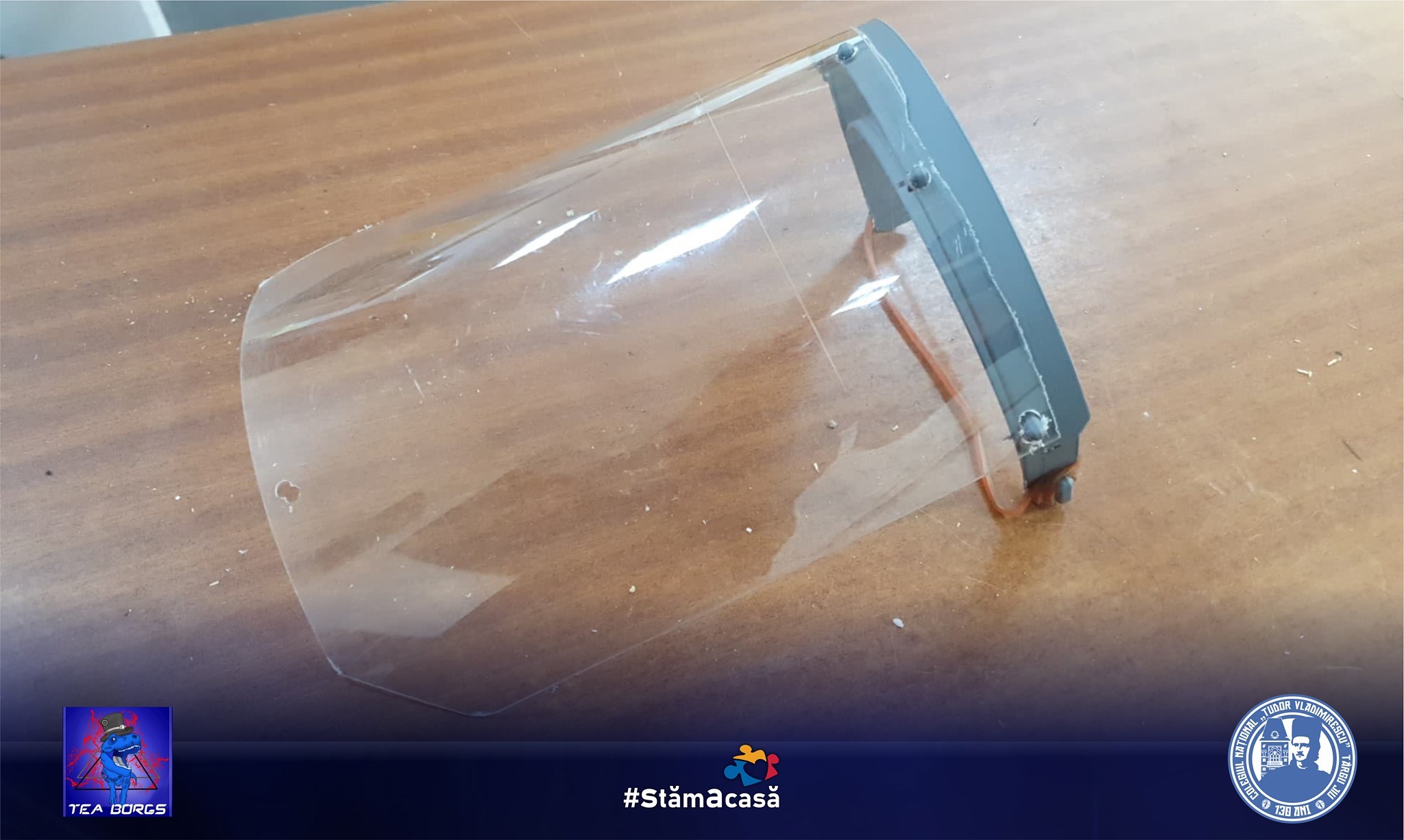 Tinerii au reușit, cu sprijinul directorului Dorin Tașcău, să realizeze, prin imprimare 3D, pe baza unui proiect al elevului Alexandru Stoian, o vizieră care poate fi o reală barieră împotriva infectării cu noul coronavirus.