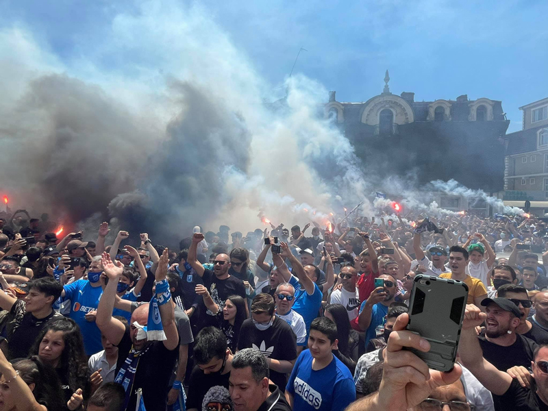 Duminică, sărbătoarea s-a mutat în centrul Băniei, unde mii de suporteri au fost alături de jucători la prezentarea trofeului.
