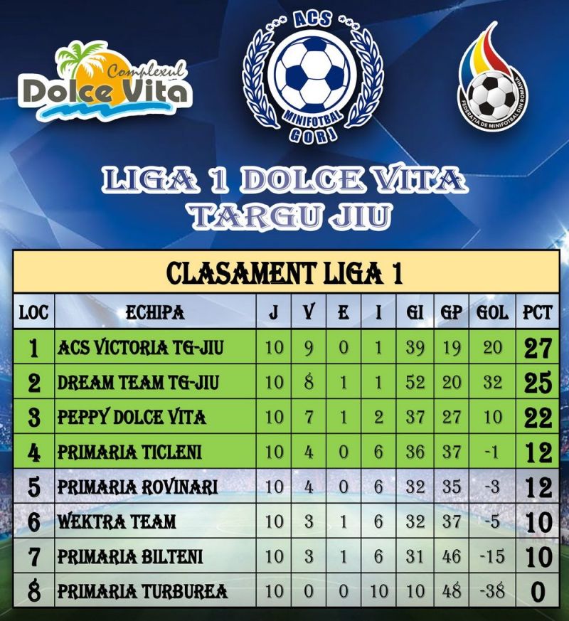 Continuă lupta pentru titlu în Liga 1 Dolce Vita. ACS Victoria, Dream Team și Peppy Dolce Vita îşi dispută supremaţia în cea mai tare competiţie de minifotbal. Peppy Dolce Vita s-a impus în cel mai interesant joc al etapei, contra celor de la Wektra Team. Meciul a fost unul spectaculos, cu 9 goluri înscrise și suspans până la fluierul final.