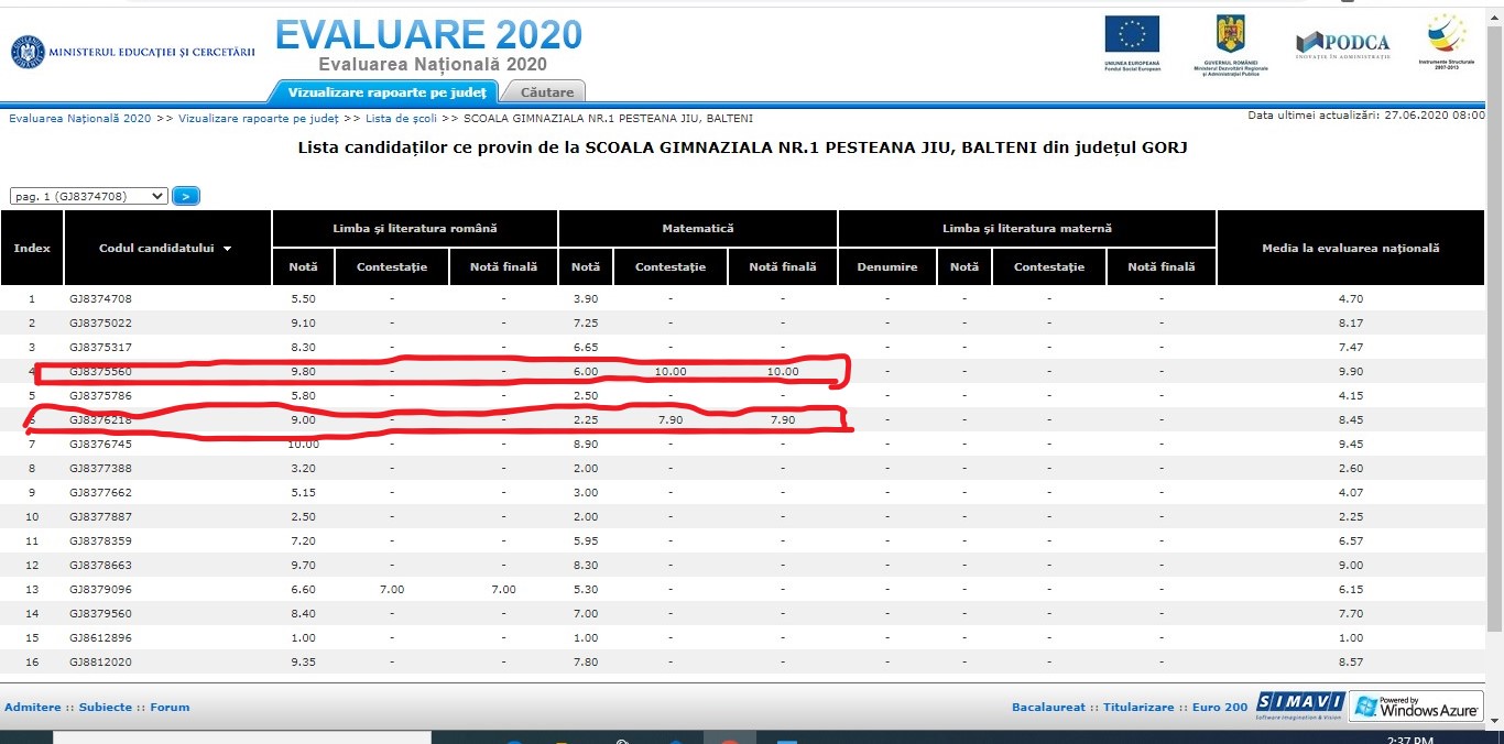 Recorectarea lucrărilor de la Evaluarea Națională a adus cu sine surprize de proporții. Doi candidați din Gorj s-au trezit cu note mărite cu 4, respectiv 5,45 de puncte la Matematică, iar pentru alți aproape 50 de candidați contestațiile depuse au avut ca rezultat note mai mici decât cele primite inițial.