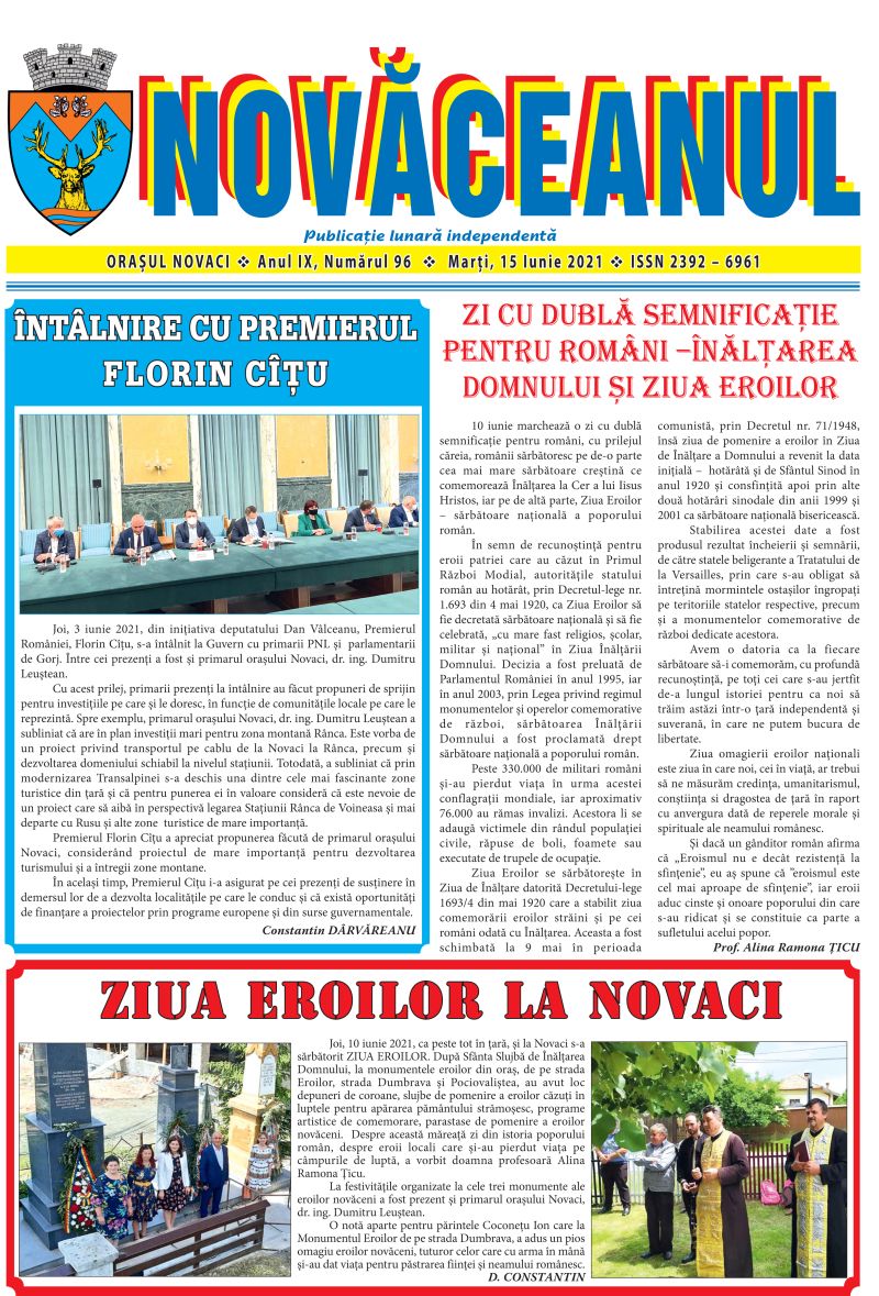 De această dată, ajunsă la Anul IX, Numărul 96, NOVĂCEANUL este la fel de bine scris, paginat și ilustrat, bucurându-se de o tehnoredactare cum numai foarte inspirata RODICA TEIȘI poate să o creeze, iar PRE-press&print: Tipografia ProdCOM din Târgu Jiu o face, spre lauda ei.