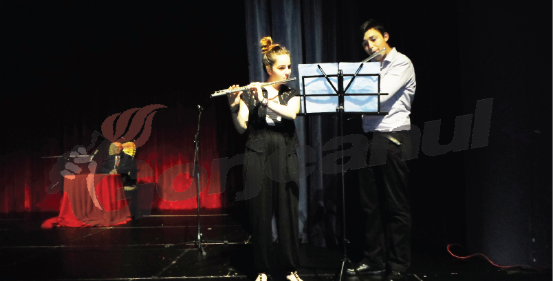 Apoi, a urmat un moment musical la flaut cu elevi ai Liceului de Arte “Constantin Brăiloiu” din Târgu-Jiu, tinerii plini de har Naomi Botănel şi Gigel Eugen Popescu, răsplătiţi cu binemeritatele aplauze.