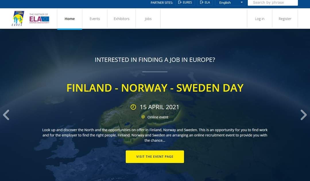 În data de 15 aprilie 2021 între orele 11:00 și 15:00 (CET), va avea loc pe platforma European (Online) Job Days: https://www.europeanjobdays.eu/, evenimentul intitulat “Finland – Norway – Sweden Day”.