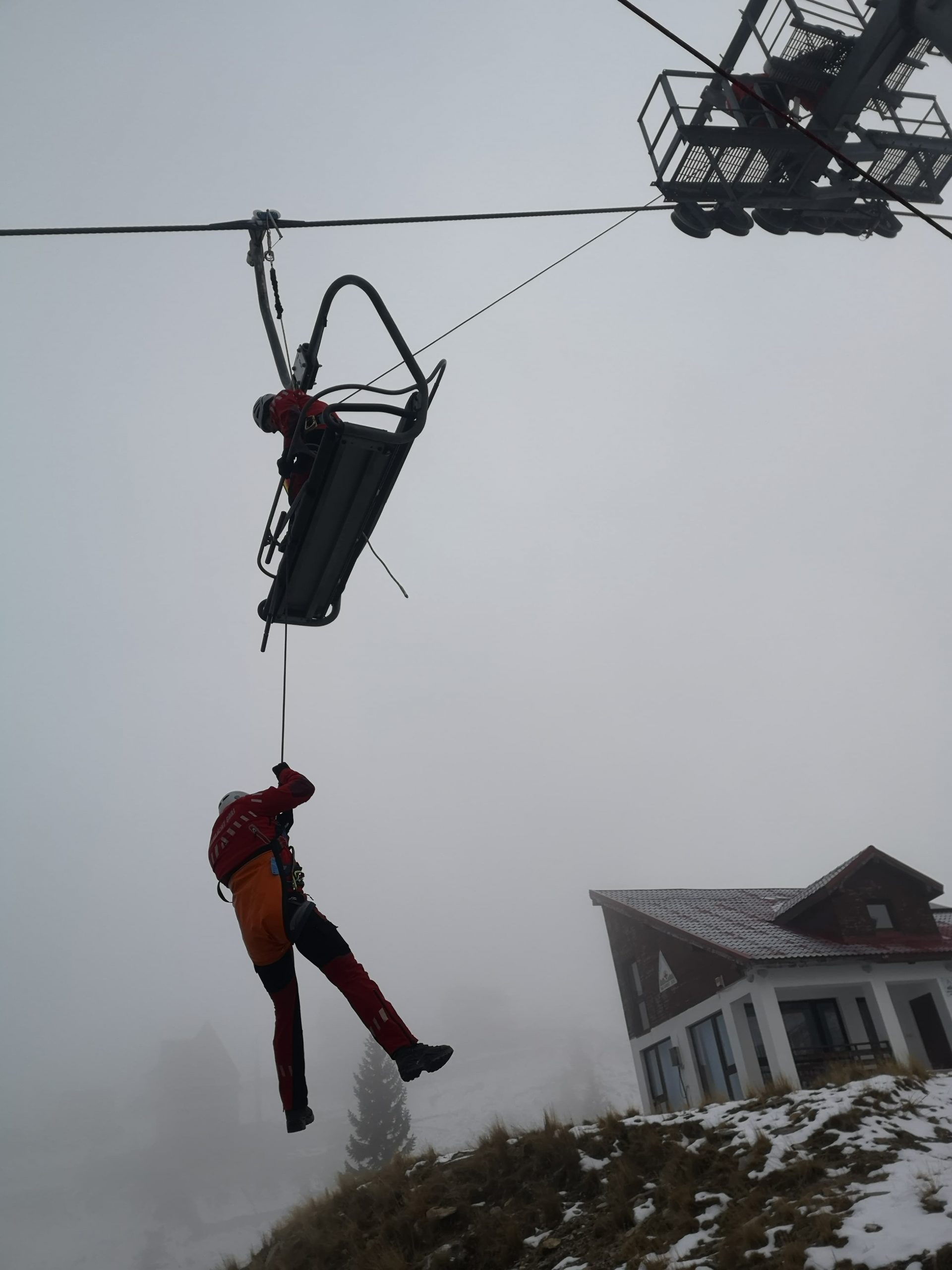 Exercițiu de salvare din telescaunul de la Rânca