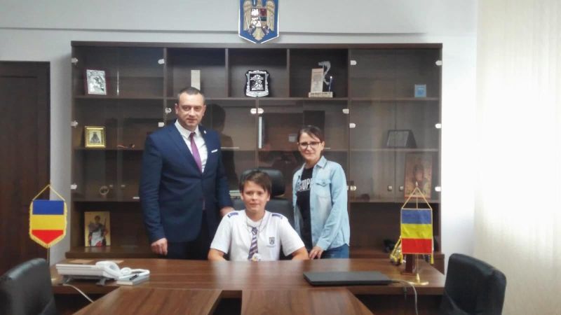 Valentin Florin Doncea, elevul în vârstă de 12 ani, din comuna Aninoasa, care a câștigat concursul ,,Invitație la creație”, organizat de reprezentanții IPJ Gorj, a fost ,,polițist pentru o zi”, ieri. Acesta a vizitat sediul Poliției și a avut ocazia de a-i ocupa locul șefului instituției, Decebal Drăghiea, pentru câteva clipe.