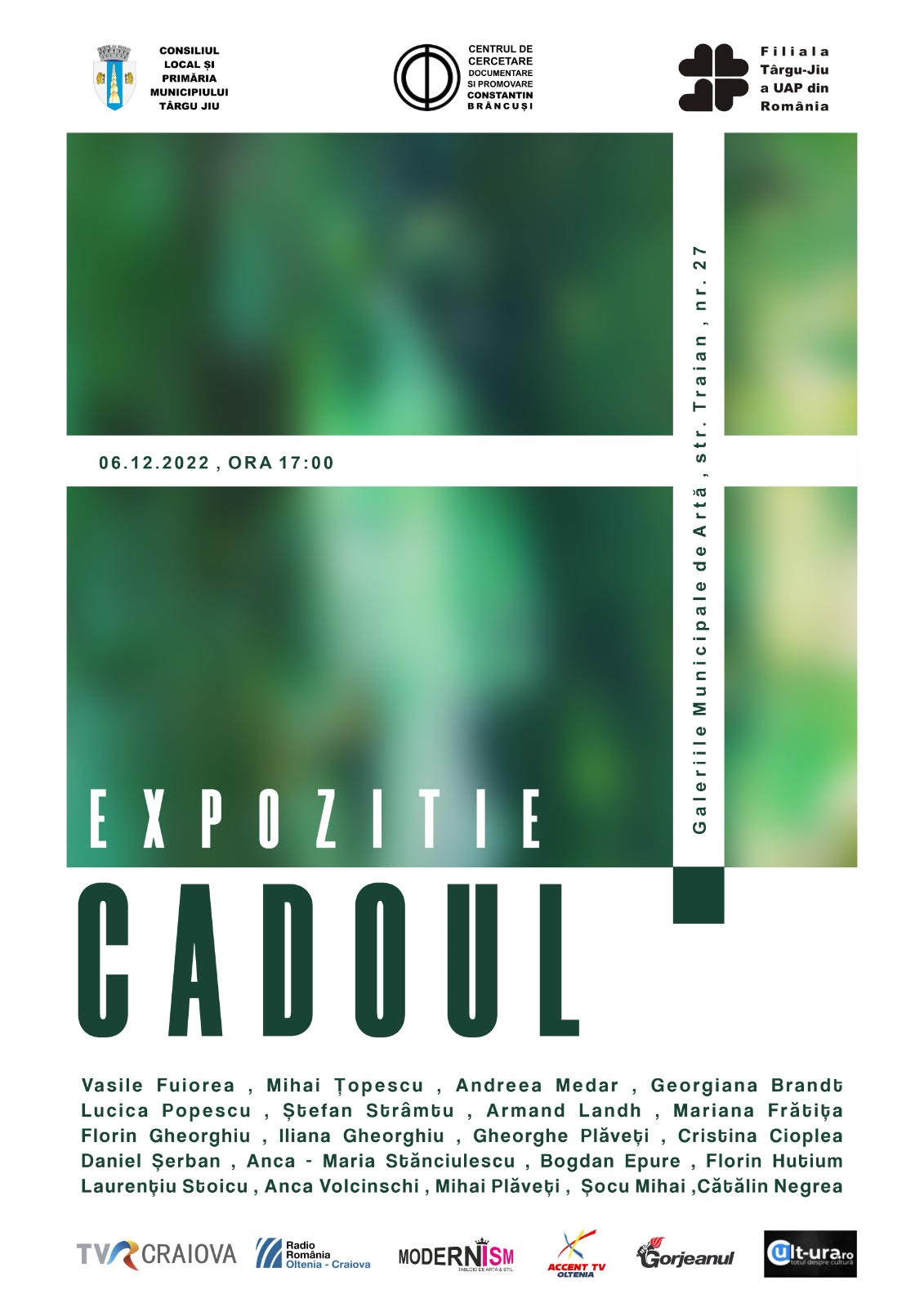 Filiala Târgu Jiu a Uniunii Artiștilor Plastici din România, în parteneriat cu Centrul de Cercetare, Documentare și Promovare „Constantin Brâncuși” și Primăria și Consiliul Local Târgu Jiu, organizează marți, 6. decembrie 2022, ora 17.00., la Galeriile Municipale de Artă din Târgu Jiu, vernisajul expoziției de grup „Cadoul”, a membrilor Filialei Târgu Jiu a UAP din România.