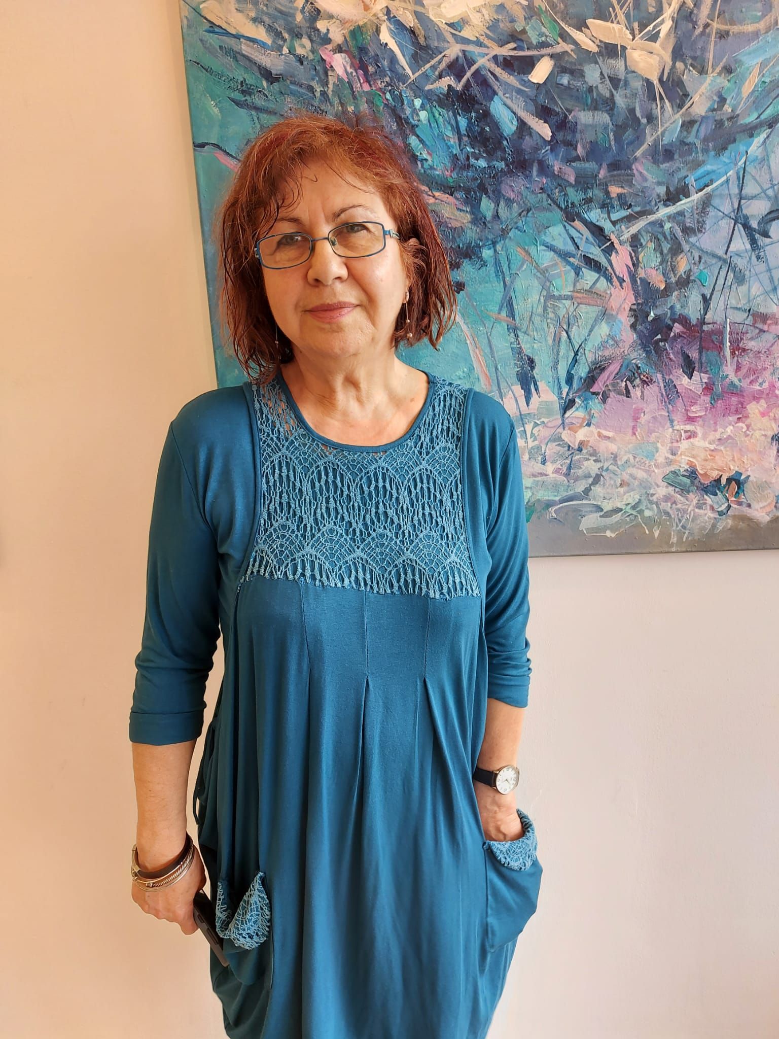 În scurtul interviu pe care i l-am luat, artista a făcut următoarea mărturisire: „Mi-a făcut o mare plăcere această invitație, de a participa cu lucrările mele la Târgu Jiu, unde sunt pentru prima oară. Inspirația mea pornește din mai multe surse, foarte simple și la îndemâna oricui. Una dintre surse a fost chiar grădina mea. A doua a fost plaja cu pietre sau cu nisip. A treia este absolut vegetală. Toate acestea sunt trecute prin filtru personal, interpretându-le așa cum am dorit, compozițional și cromatic. Pictura mea este la granița dintre abstract și figurativ. Aș spune că este un abstract liric, care mă caracterizează pe mine, ca persoană. Din punct de vedere cromatic, consider că totul că este pozitiv, pentru că eu însămi sunt o persoană pozitivă, solară și oricât aș vrea să îmi temperez cromatica, nu sunt în stare. Deci totul iese din sufletul meu, din mintea mea”.