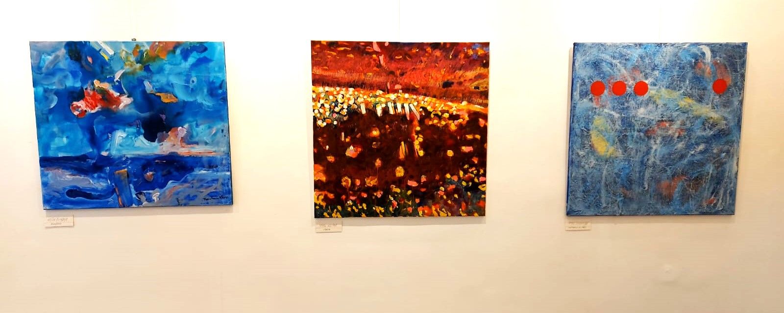 Lucrările de pe simeze sunt predominant nonfigurative: din 19 picturi, doar două sunt figurative, existând și 3 sculpturi în lemn, care sunt, de asemenea, nonfigurative. Multe dintre ele au în bakground arta de avangardă din perioada interbelică.