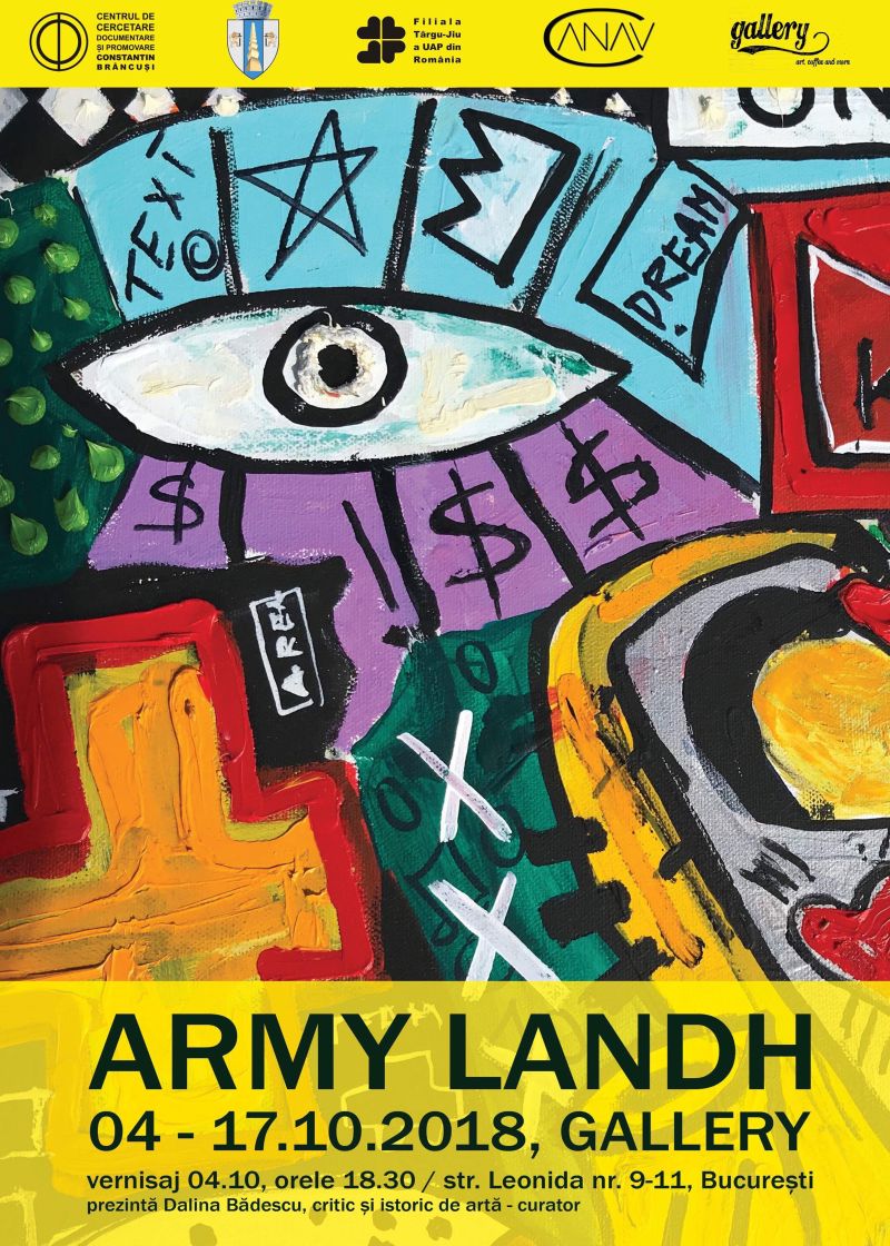Landh Armand organizează, în calitate de artist plastic-pictor, membru stagiar al Filialei Târgu Jiu a Uniunii Artiștilor Plastici din România, expoziția personală de pictură intitulată „Army Landh”, al cărui vernisaj va avea loc în data de 04 Octombrie 2018, ora 18.30, la „Gallery”, Strada Leonida nr. 9-11., București. Curator este Dalina Bădescu. Evenimentul expozițional va face parte în data de 05. Octombrie din programul „Noaptea Galeriilor/Muzeelor”. Expoziția va fi deschisă publicului în perioada 4-17 octombrie 2018.