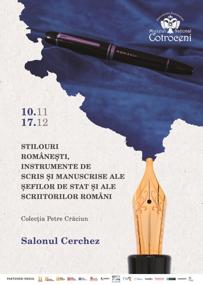 Muzeul Național Cotroceni vernisează astăzi, la ora 17.00, în Salonul Cerchez, expoziția „Stilouri românești, instrumente de scris și manuscrise ale șefilor de stat și ale scriitorilor români. Colecția Petre Crăciun”. Vizitatorii vor avea ocazia să observe, în premieră, stilouri sau alte instrumente de scris și înscrisuri olografe ale șefilor de stat din România. Expoziția este completată de stilouri și manuscrise ale unor mari scriitori. Publicul va putea admira stiloul care a aparținut și cu care a scris Marin Preda, piesă de patrimoniu național, dar și