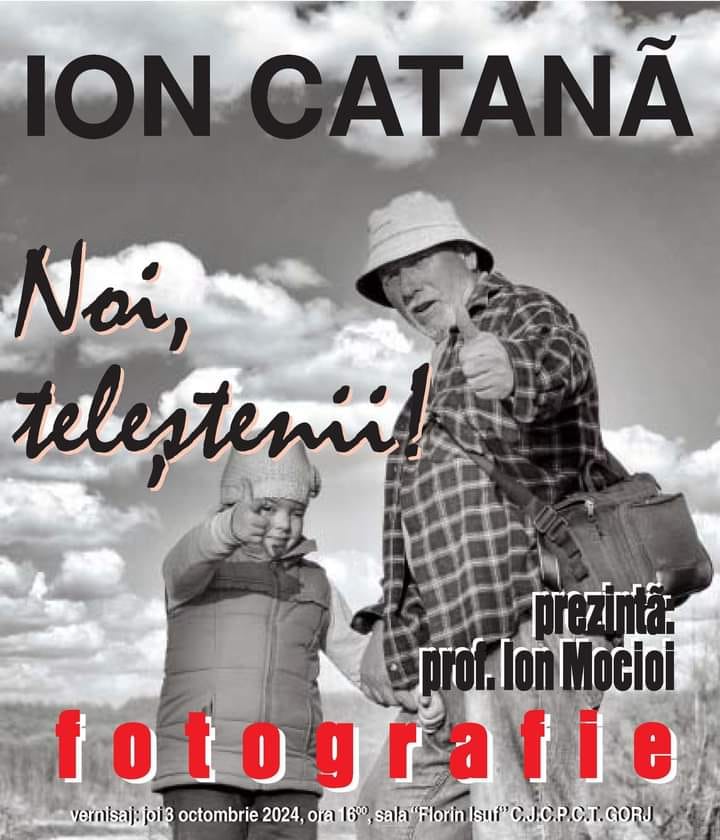 Centrul Județean pentru Conservarea și Promovarea Culturii Tradiționale (CJCPCT) Gorj organizează vernisarea expoziției de fotografie  “Noi, teleștenii!”, semnată de cunoscutul fotograf Ion Catană. Evenimentul va avea loc mâine, 3 octombrie 2024, de la ora 16.00, la sala “Florin Isuf” a CJCPCT Gorj.