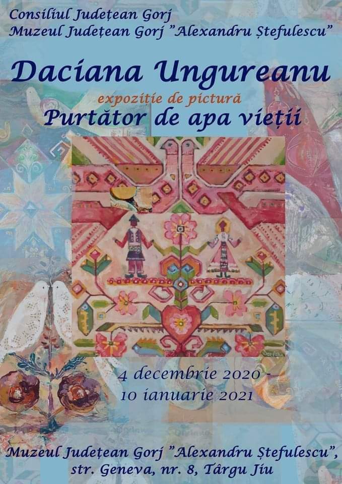 În perioada 4 decembrie 2020 – 10 ianuarie 2021, Muzeul Județean Gorj „Alexandru Ștefulescu” va găzdui expoziția personală de pictură a artistei plastice Daciana Ungureanu. Intitulată ”Purtător de apa vieții”, expoziția este deschisă spre vizitare respectând normele impuse în această perioadă de pandemie.