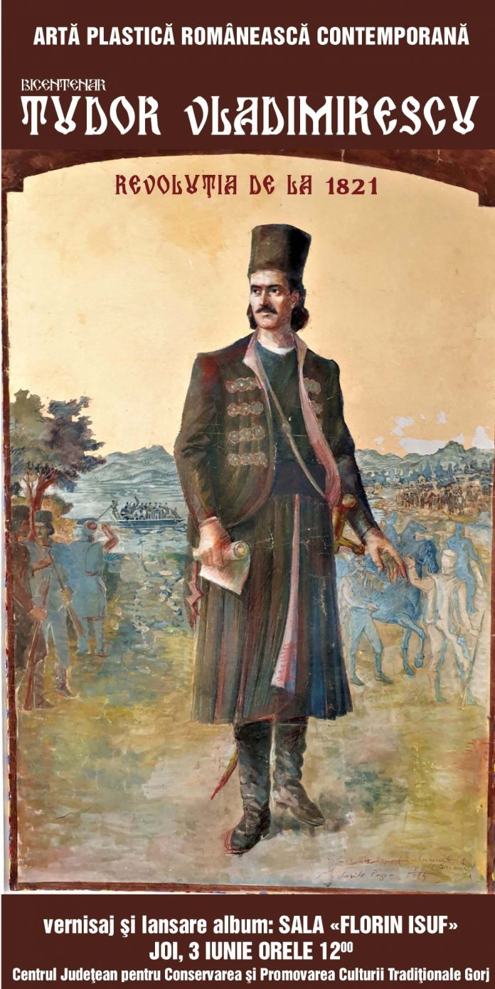 Centrul Județean pentru Conservarea și Promovarea Culturii Tradiționale Gorj vă invită joi, 3 iunie 2021, începând cu ora 12.00, la vernisarea unei expoziții, dar și la lansarea unui album dedicat lui Tudor Vladimirescu. „Anul 2021 marchează împlinirea a 200 de ani de la Revoluția din 1821, condusă de Tudor Vladimirescu. Cu acest prilej, 2021 a fost declarat „Anul Tudor Vladimirescu în Gorj”. Expoziția dedicată momentului istoric 1821 și personalității lui Tudor Vladimirescu cuprinde lucrări în acuarelă, lucrări realizate cu ulei pe pânză, desen în peniță și desen în creion. Sunt 41 de artisti prezenți pe simezele de la sala „Florin Isuf” a CJCPCT GORJ. Începând de joi, 3 iunie 2021, expoziția dedicată BICENTENARULUI TUDOR VLADIMIRESCU este deschisă pentru vizionare. Albumul “Artă plastică românească contemporană” este semnat de Teodor Dădălău și cuprinde lucrări realizate de Corina Perianu, Ion Brodeală, Vasile Pop Negreșteanu, Valentin Tănase, Despina Ciuncanu, Grigore Haidău, Florin Preda Dochinoiu, Florin Alexandru Preda, Cornel Vana, Daria Haidău și lista nu se termină aici”, au transmis reprezentanții CJCPCT Gorj.