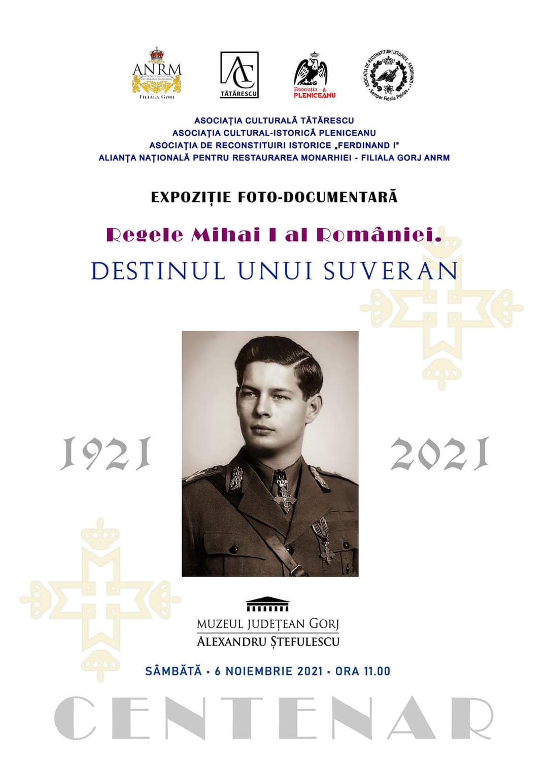 Asociația culturală Tătărescu, Asociația cultural-istorică Pleniceanu, Asociația de Reconstituiri Istorice „Ferdinand I” și Alianța Națională pentru Restaurarea Monarhiei – Filiala Gorj ANRM organizează la Muzeul Județean Gorj „Alexandru Ștefulescu”, în data de 6 noiembrie 2021, cu ocazia aniversării Centenarului nașterii Regelui Mihai I al României, deschiderea Expoziției foto-documentare „Regele Mihai I al României. Destinul unui suveran”.