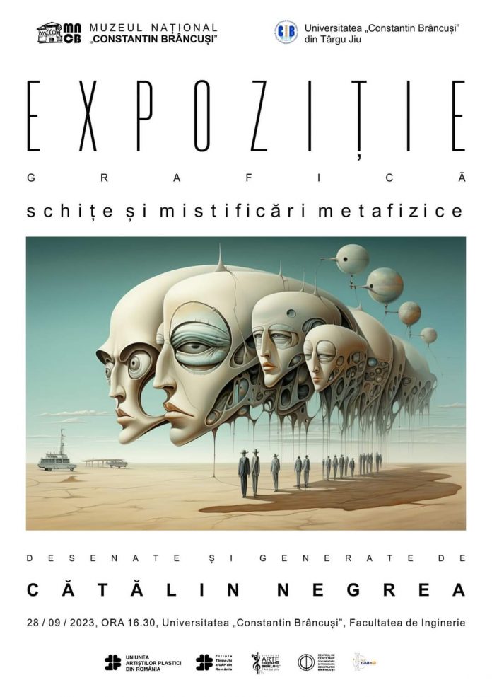 La Facultatea de Inginerie, vor fi expuse lucrări care fac parte din expoziția de grafică „Schițe si mistificări metafizice”, o expoziție inedită, de tip experiment vizual, în care artistul plastic Cătălin Negrea propune o incursiune în lumi imaginare care sfidează metaforic realitatea, evazionând cu succes din aceasta.
