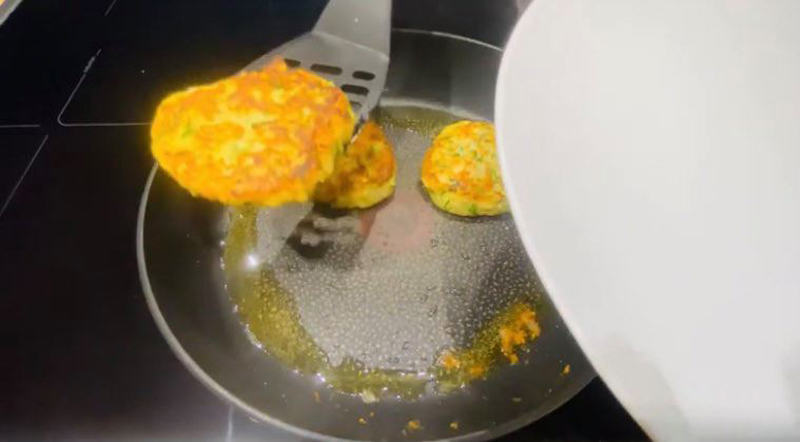 Încălziţi uleiul de măsline într-o tigaie şi formați chiftele din amestec. Prăjiți până se