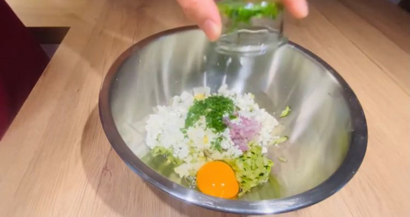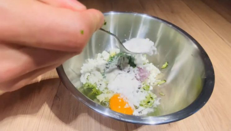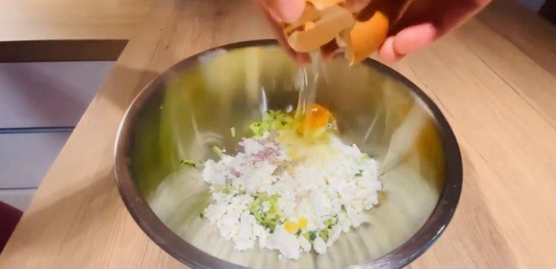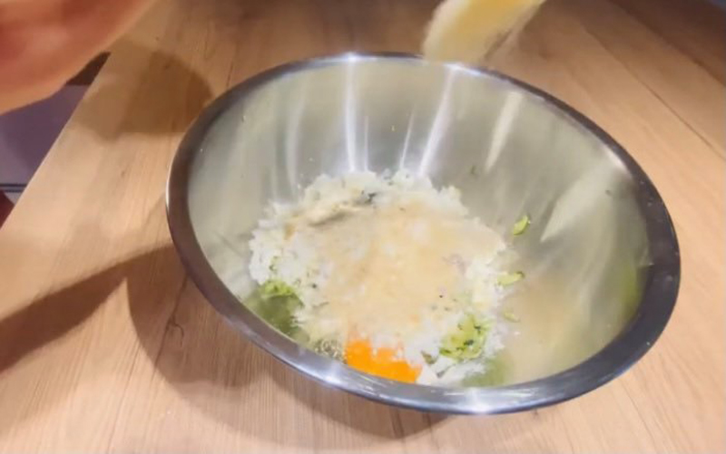 cu o furculiță. Se adaugă ceapa Şalotă, oul, pătrunjelul, făina, pesmetul, coaja de lămâie