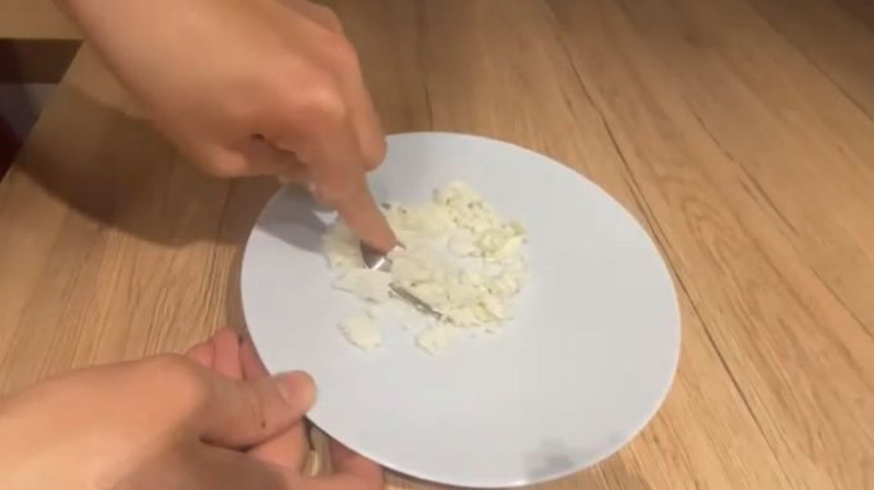 Tocaţi mărunt firele de arpagic verde. Căţeii de usturoi se curăţă şi se presează. Puneţi