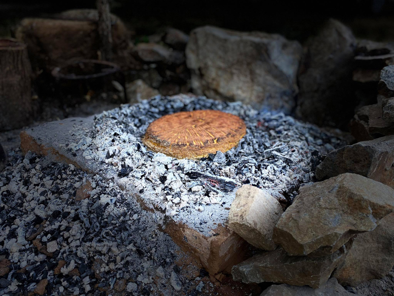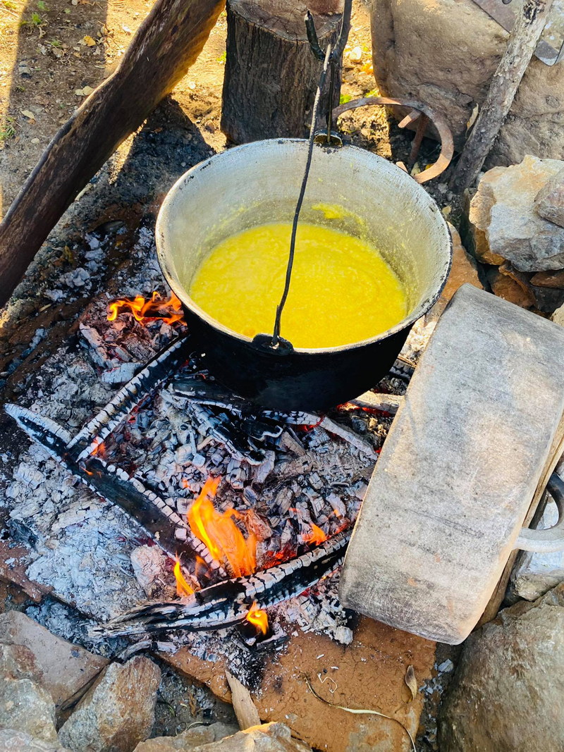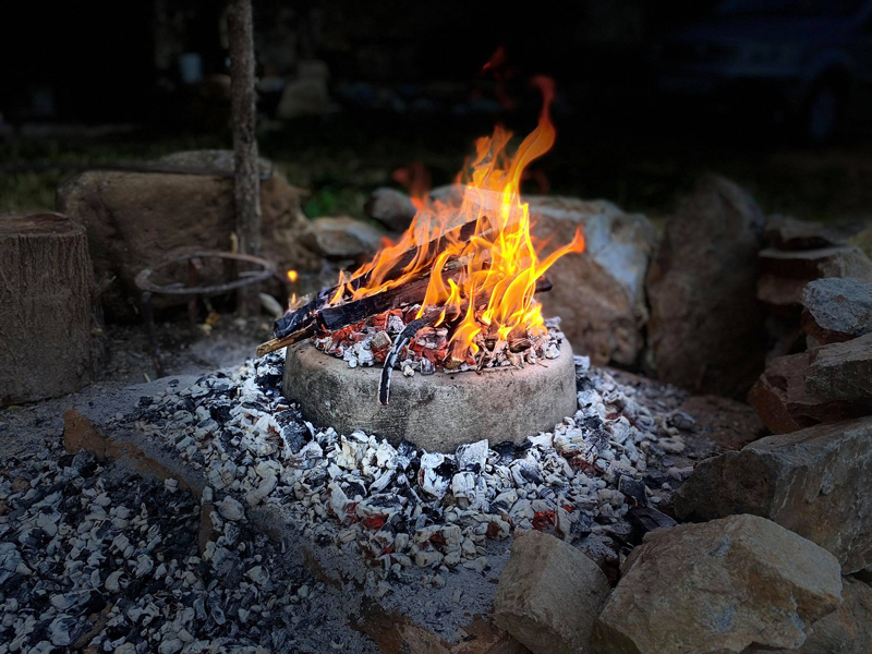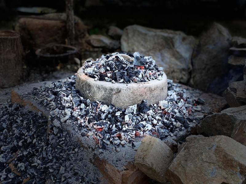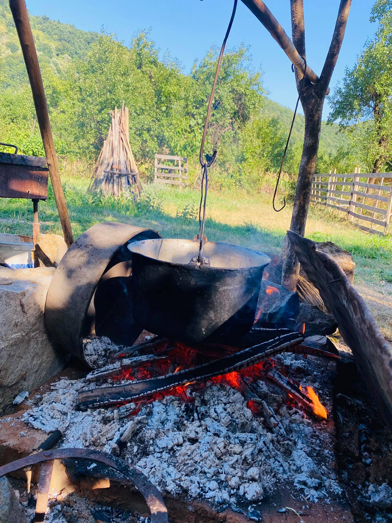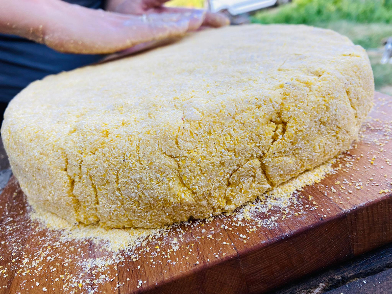 Prima dată se face focul pe vatră, este recomandat ca vatra să fie din cărămidă refractară. După care se pregătește o mămăligă moale.
