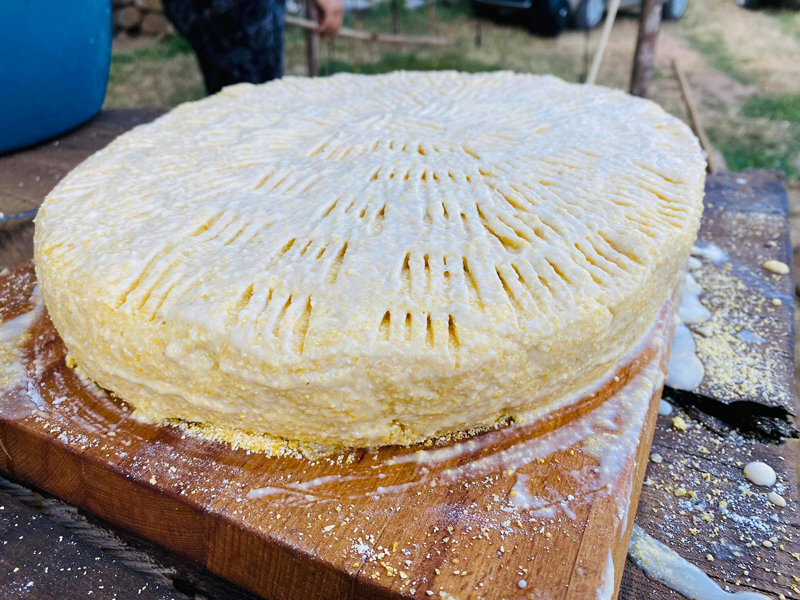 După ce a fiert mămăliga, se pune în mijlocul postăvii şi se lasă să se răcească puţin. Când s-a răcit se amestecă totul până se obţine o compoziţie omogenă. Se modelează turta şi, cu o furculiţă, se fac după placul fiecăruia diferite modele.