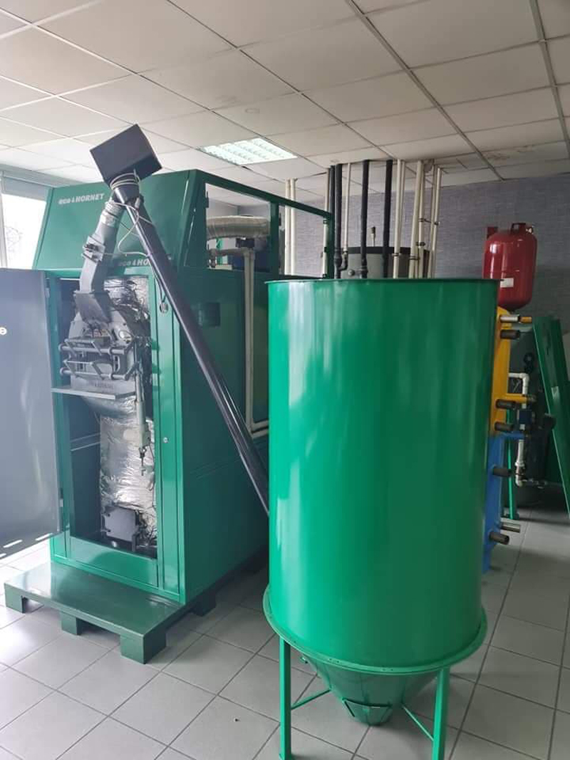 Practic, o instalație prezentată la această fabrică asigură apa caldă și agentul termic, la o temperatură de 31 de grade pentru o suprafață de 900 mp și o înălțime de 4 m. Asta consumând astfel de peleți, undeva la 200 grame pe oră, după intrarea în parametrii. Practic, deșeurile municipale pot fi transformate în peleți, după trecerea prin circuitul tehnologic.