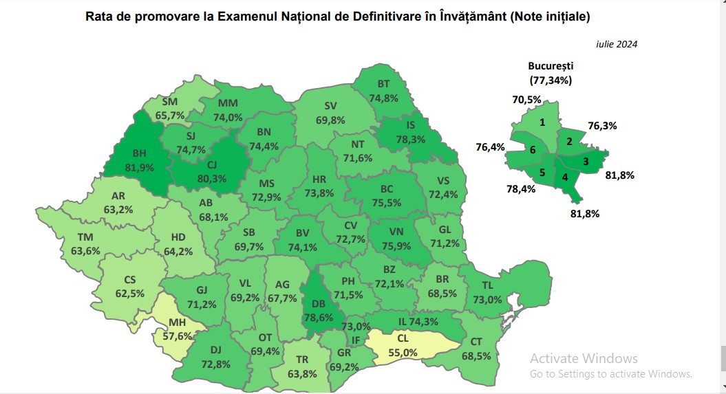 Pentru a promova examenul de Definitivat este nevoie ca notele la proba scrisă și la inspecție să fie peste 7, iar media acestora să fie cel puțin 8. Astfel, 19 candidați au picat examenul, rata de promovare fiind de 71,2%.