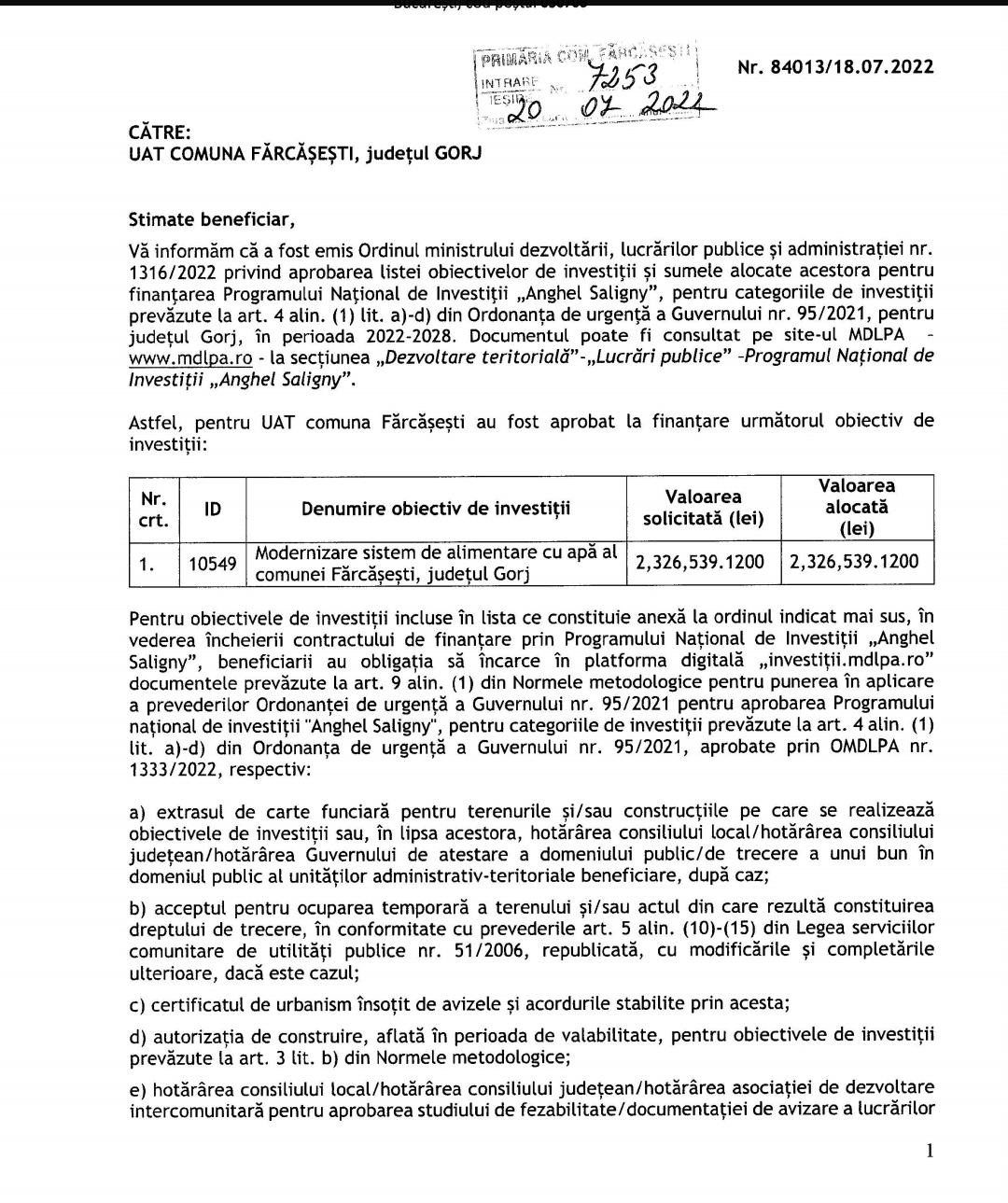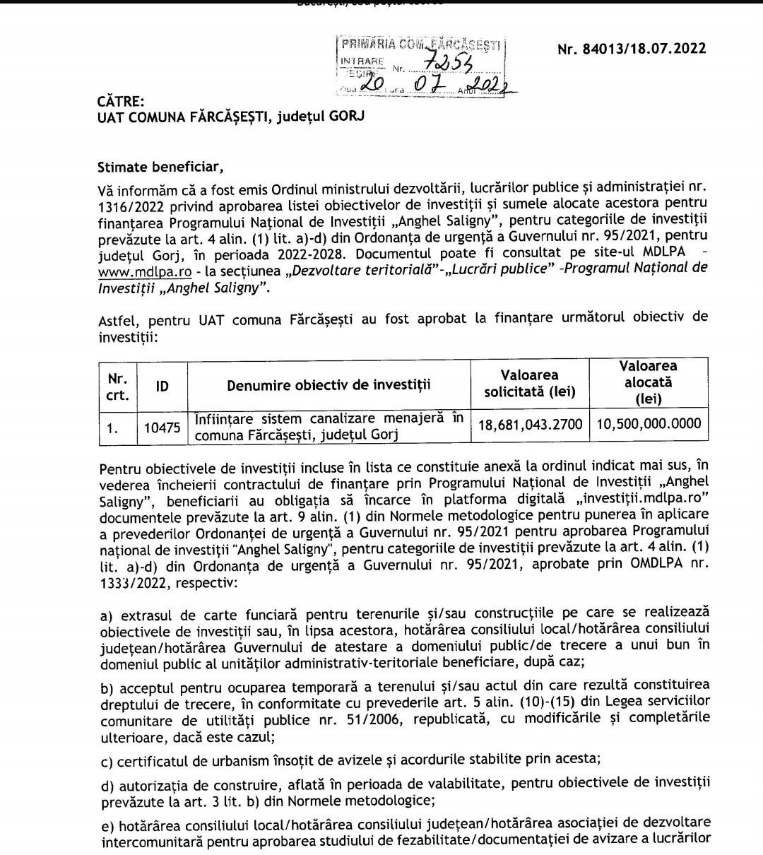 Două proiecte importante a depus administrația locală din Fărcășești pe Anghel Saligny, ambele fiind aprobate.