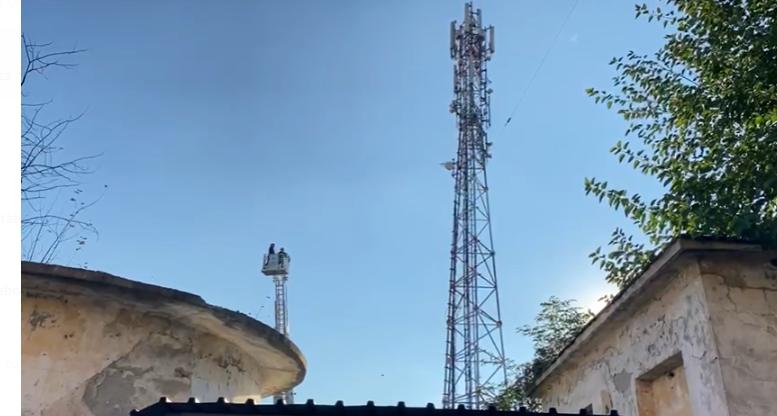 Femeia care s-a urcat pe un stalp, a coborât azi-noapte