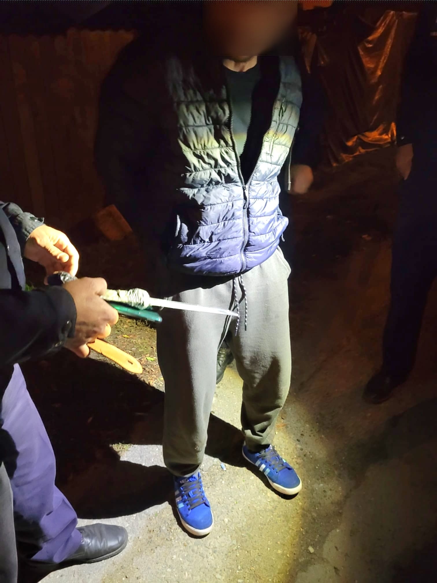 În urma controlului corporal efectuat asupra bărbatului, a fost găsit un obiect tăietor-înțepător cu lama de circa 30 cm.