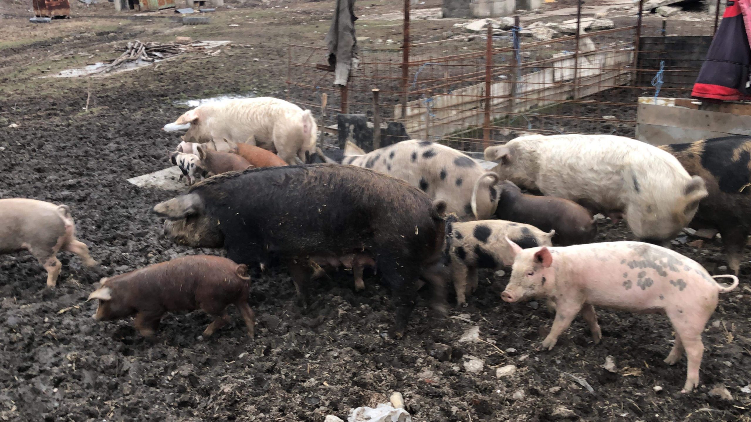 O adevărat ferma de porci, clandestină însă, a fost depistată în incinta Carierei Roșia, aparținând Complexului Energetic Oltenia.