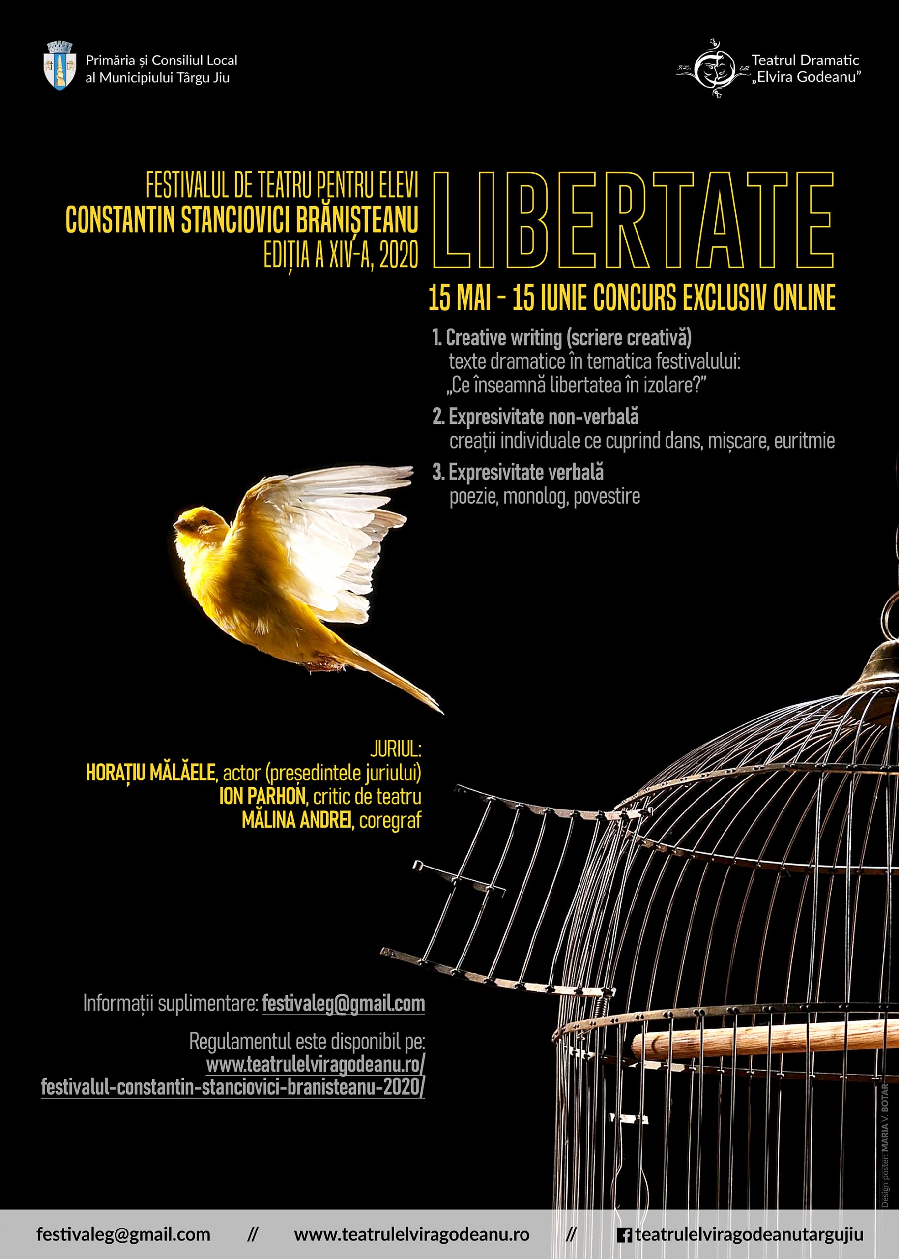 Teatrul Dramatic ”Elvira Godeanu” din Târgu Jiu organizează cea de-a XIV-a ediție a Festivalului de teatru pentru elevi ”Constantin Stanciovici Brănișteanu”, eveniment ce va avea loc în perioada 15 mai-15 iunie 2020. Festivalul se adresează elevilor din ciclul şcolar liceal, din clasele IX-XII, din instituții școlare din mun. Târgu Jiu și jud. Gorj (mai puțin elevi ai Liceului de Arte „Constantin Brăiloiu” Târgu Jiu). Ediția din acest an a Festivalului se desfășoară exclusiv online. Tema acestei ediții a festivalului este ”Libertate”.