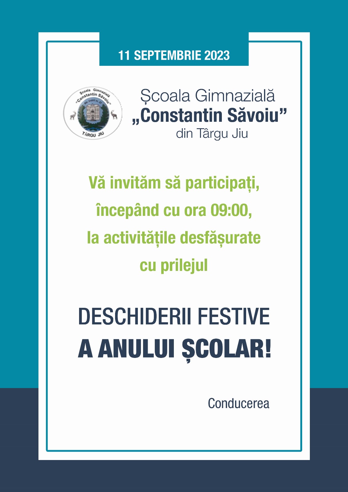 Festivitățile de deschidere a noului an școlar au început în Gorj, iar la Școala Gimnazială ”Constantin Săvoiu”, din Târgu Jiu, cea mai mare școală de gimnaziu din municipiu, este prezentă și prof. Marcela Mrejeru, inspector general al ISJ Gorj.