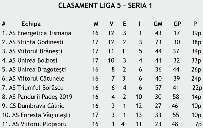 AS Pandurii Padeș 2019 1 – 5 AS Știința Godinești