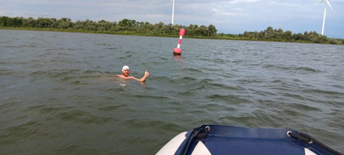 Înainte de a ajunge în Marea Nordului, bibliotecarul din Petroșani spune că are de înfruntat valuri care îl „îngroapă”. Vântul suflă cu putere, apa este rece, iar el e din ce în ce mai epuizat, dar spune că nu se dă bătut tocmai acum, când a reușit să treacă cu brio peste toate obstacolele de care a avut parte în această cursă. „Condițiile de înot sunt deosebit de dificile. Înot într-un lac cu zero curent, dar cu vânt foarte puternic din față și cu valuri a căror înălțime mă îngroapă la propriu. Sunt ca într-o mașină de spălat. În astfel de condiții, oriunde în lume, fie că ar fi vorba de traversarea înot a unui lac, sau a unei strâmtori, sau a oricărei secțiuni de apă, organizatorii traversării, dar mai ales căpitanul NU ar permite ca un înotător să execute înotul. Eu n-am ce face! Nu-mi permit să mă opresc deoarece vântul poate să bată și mâine la fel. Și poimâine. Și o săptămână la rând. În aceste condiții am reușit să înot aproximativ 9 km, de la coordonatele 51.7207987/4.4050665, adică de la podul Haringvlietbrug și până la coordonatele 51.7561672/4.2967419”, a precizat sportivul hunedorean. Dar, în timp ce Iancu descrie condițiile dificile pe care le are de înfruntat în apă, nu uită să menționeze că o femeie îi este alături în aceste peripeții. Este persoana pe care trebuie să o aibă obligatoriu alături ca un bun vorbitor de limbă olandeză, o româncă voluntară care s-a înhămat pentru câteva zile la munca istovitoare a lui Avram Iancu. „Dana Vujik, o femeie temerară. Tot în aceste condiții cumplite, a rezistat pe barcă doamna Dana, o româncă stabilită în Olanda și care a avut rolul ,,omului care știe Olandeză”. Mulțumesc, doamna Dana, și vă felicit pentru faptul că ați rezistat în vânt, valuri enorme, frig și umezeală. Sărut mâna! La jumătatea zilei am fost așteptat de către alți doi români faini, Raul Chiriță si Sony Szasz (Sony ține cu Avram Iancu) Au adus drapelul României, o pancardă mare pe care scria Avram Iancu și o oală de … sarmale. Vă mulțumim! Mulțumesc și echipei mele de suport care a înfruntat o ploaie puternică la finalul zilei: Sandrino Mătase, Nelu Căpățână, Radu Ileană. Dumnezeu să binecuvânteze România!”, a transmis Avram Iancu. Ieri dimineață, înainte de a porni în cursă, acesta avea de parcurs mai puțin de 20 de kilometri până la terminarea traversării Rinului, doar că în împrejurările descrise cursa lui se va încheia cel mai probabil pe finalul acestei săptămâni. Și, astfel, cunoscutul bibliotecar din Valea Jiului devine singurul care are la activ traversarea în întregime, fără costum de protecție, a fluviilor Dunărea și Rin, în palmaresul său adăugându-se multe alte performanțe.