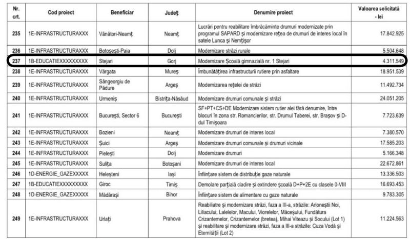 Finanțare de aproape un milion de euro pentru Școala Gimnazială ,,Aurel Teodorescu” Stejari