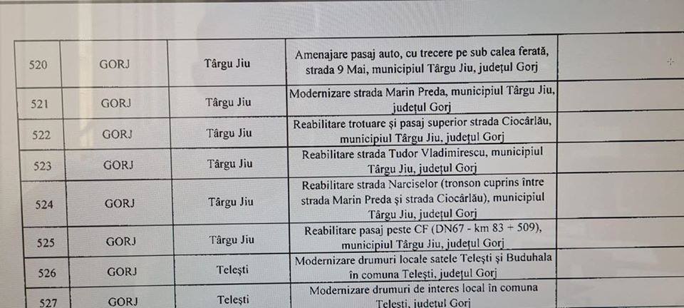 Cele șase investiții sunt: amenajarea pasajului auto cu trecere pe sub calea ferată din strada 9 Mai (către strada Ana Ipătescu), reabilitarea pasajului peste calea ferată din strada Unirii, reabilitarea străzii Tudor Vladimirescu, modernizarea străzii Marin Preda, reabilitarea trotuarelor și pasajului superior de pe strada Ciocârlău și reabilitarea celui de-al doilea tronson al străzii Narciselor.