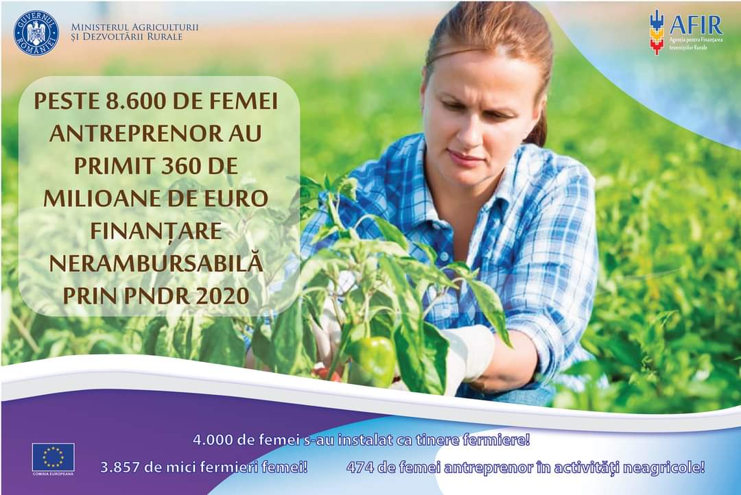 AFIR a finanțat prin PNDR 2020 proiectele dezvoltate de 8.610 beneficiari femei, cu fonduri europene nerambursabile în valoare de aproximativ 360 de milioane de euro.