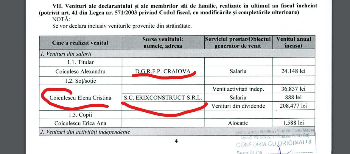 Elena Coiculescu figurează administrator al SC ERIXCONSTRUCT SRL, firmă de construcții cu 25 de angajați la activ.