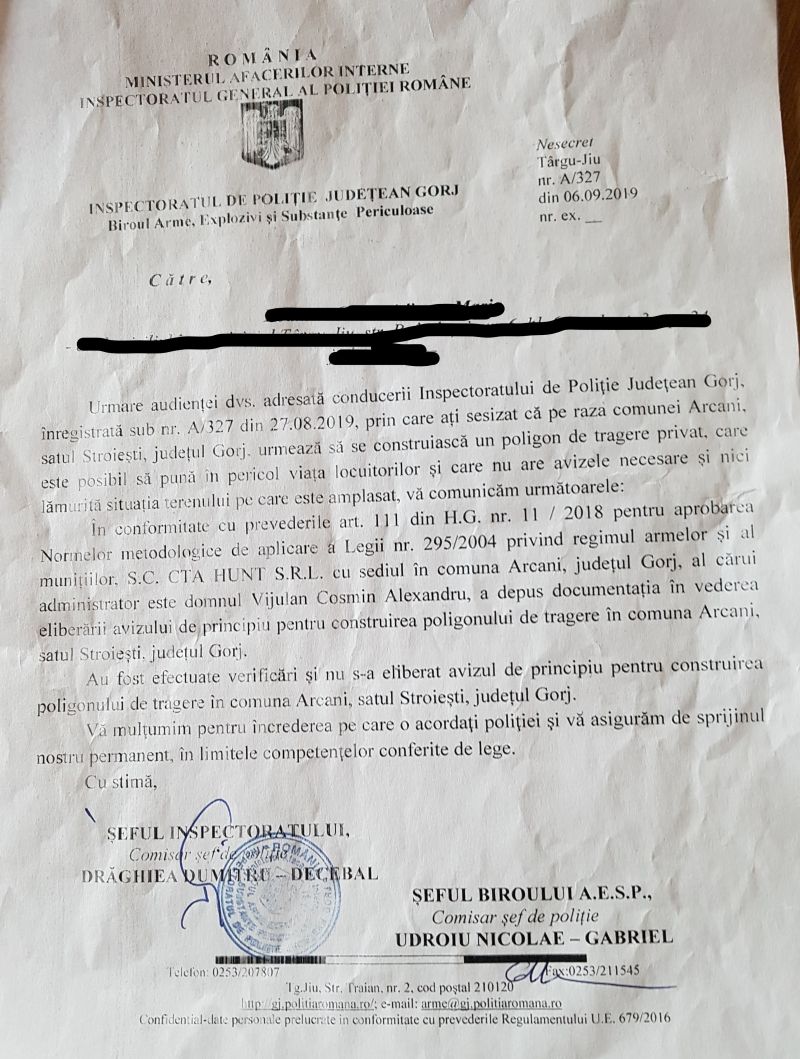 În atare condiții, afaceristul mai are mici șanse de a ocoli avizul IPJ Gorj, mai ales că, deja, în Stroiești s-au adunat zeci de semnături de la localnicii, care sunt împotriva poligonului, mai ales după incidentul de la Măceșu, și au și terenuri în zona închiriată de alesul local.