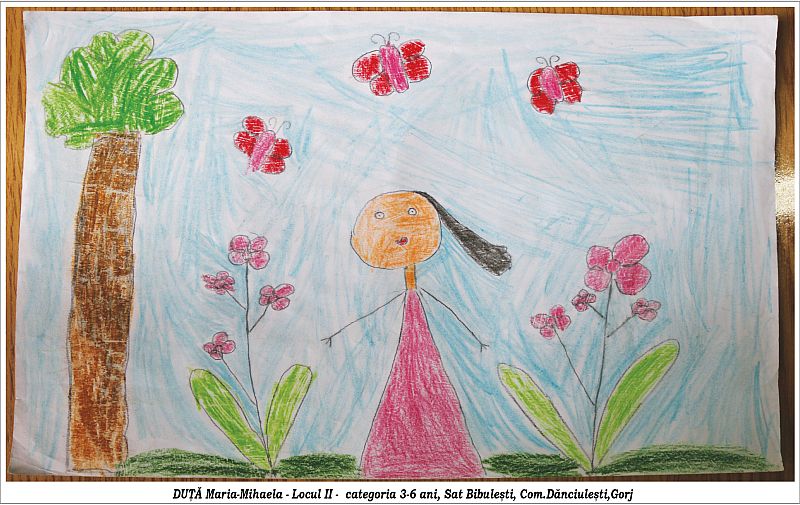 Zeci de lucrări de desen ale copiilor din mai multe județe, cu vârste cuprinse între 3 și