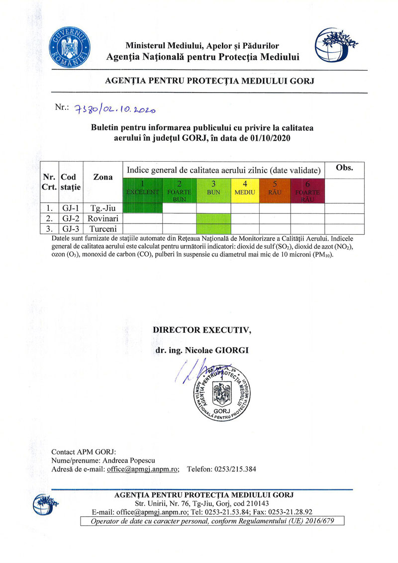 Acesta presupune și instalarea unei stații moderne de monitorizare a calității aerului în județul Gorj. Contractul de finanțare are o valoare de peste 81 de milioane de lei. Din aceștia, aproximativ 74 de milioane vor fi fonduri europene nerambursabile, prin Programul Operațional Infrastructură Mare, Axa prioritară 4. Prognoza națională privind calitatea aerului pentru fiecare oraș în parte va rezulta din suprapunerea bazei naționale de emisii (care este finanțată prin proiect) cu datele la zi privind evoluția vremii și a curenților de aer. Până în 2023, sistemul de prognoză va fi calibrat în trei orașe pilot: Ploiești, Brașov și Iași. După finalizarea proiectului, sistemul va fi aplicabil la nivel național.