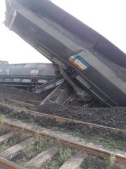 “O funie” compusă din 16 vagoane, încărcată de cărbune care venea de la Roșiuța și mergea înspre triaj pentru formarea navetei, la Motru a deraiat.
