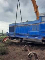 Locomotiva a rămas fără frâne, 5-7 vagoane au sărit de pe sine și sunt un morman de fiare, un mecanic a sărit, unul a rămas în locomotiva deraiată.